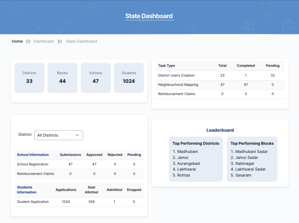 | Student Admissions Report | Provides district, block, and school-wise details of student admissions after the lottery process. |